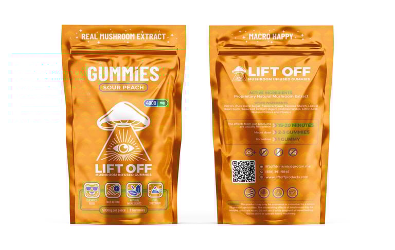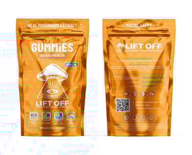 These are the first gummies in the Lift Off lineup that pack a sour taste the the popular peach flavor. These gummies bring the nostalgia of those peach circles leveled up with our unique mushroom blend.