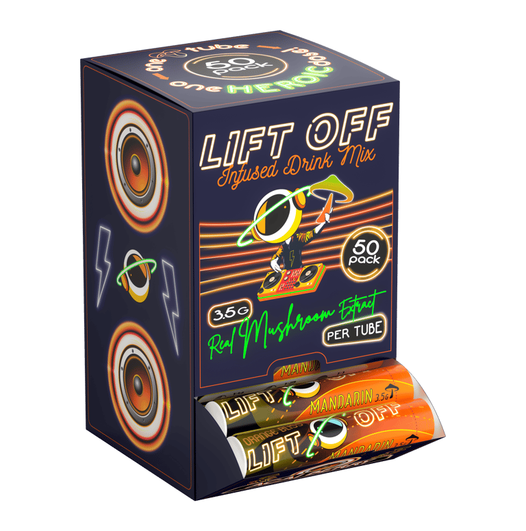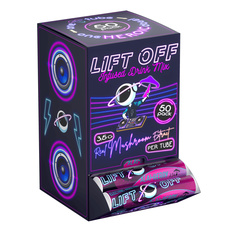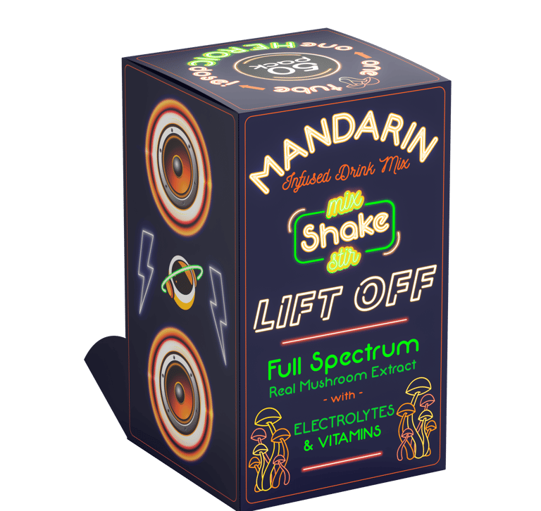 Our powder infused drink mix contains a real mushroom extract. Our proprietary full spectrum blend of magical mushrooms, vitamins and minerals are infused in our drink mix and gummies. The drink mix and gummies provide an uplifting and happy feeling to our customers.